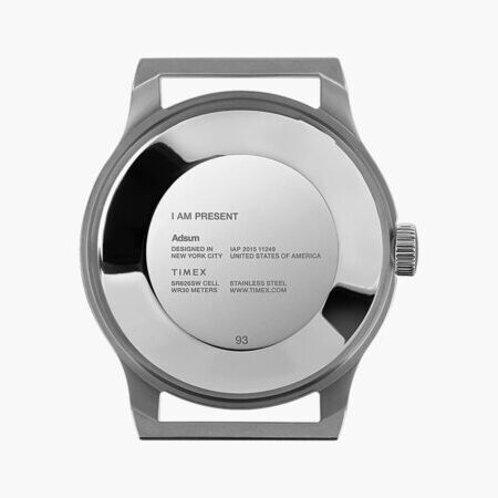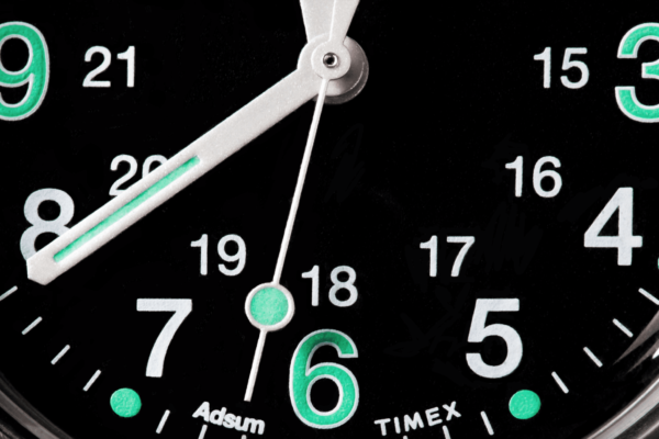 El reloj en cuestión es el Adsum x Timex 36 mm, una iteración del Timex MK1, un reloj de cuarzo de “usar y tirar” con trasera fija que la marca norteamericana suministró brevemente a los Marines en 1982.