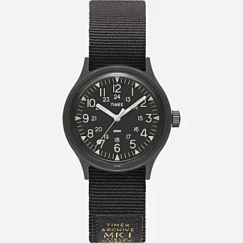Esa considerable prima posiblemente reflejaba la colaboración con la marca de ropa y complementos Adsum. Si bien la misma no puede considerarse una marca “premium”, sí que es cierto que esta joven empresa goza de muy buena reputación por la alta calidad de los productos que ofrece. Pero el hecho es que otras iteraciones contemporáneas del Timex MK1 se han ofrecido por unos €70, más o menos la mitad de lo que costaba esta pieza. Podemos ver dos ejemplos alternativos a continuación (también agotados, por cierto).