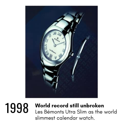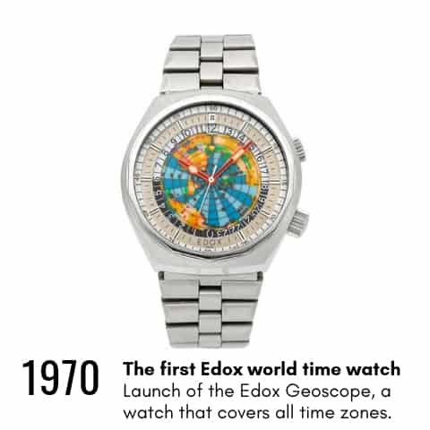 A lo largo de su historia, Edox ha creado algunos relojes de renombre, como el Delfin o el Hydro-Sub en la categoría diver. Otras destacadas piezas incluyen el Geoscope (un “worldtimer”) y la colección “Les Bémonts Ultra Slim”, que equipaba el calibre con calendario más fino jamás creado, de tan sólo 1,4 mm.
