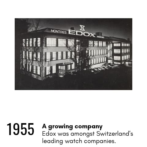 Durante este turbulento periodo, Edox se afilió a la General Watch Company, parte del conglomerado ASUAG (“Allgemeine Schweizerische Uhrenindustrie AG”) que a su vez pasó a formar parte de lo que se convertiría en el Swatch Group a partir de 1983.