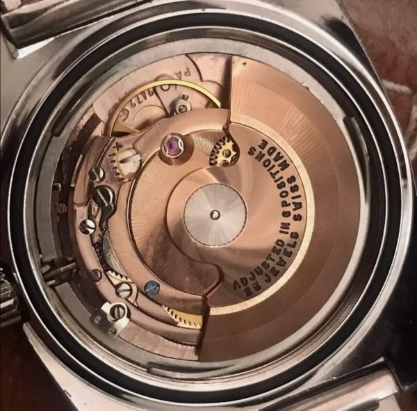 Por último, el reloj equipa el calibre ETA 2472, que estuvo en producción entre 1956 y 1974.