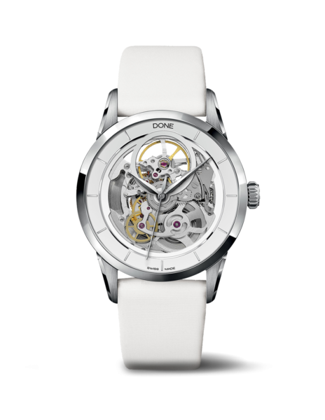 Pero tras haber puesto sus habilidades al servicio de los demás durante casi quince años, Clottu dio un paso adelante creando la marca DONE Watches. Su propósito, cómo no, era hacer el lujo accesible: brindar la oportunidad de adquirir hermosos relojes mecánicos suizos a precios razonables a través de la venta directa.