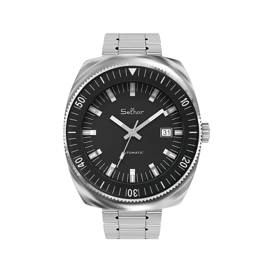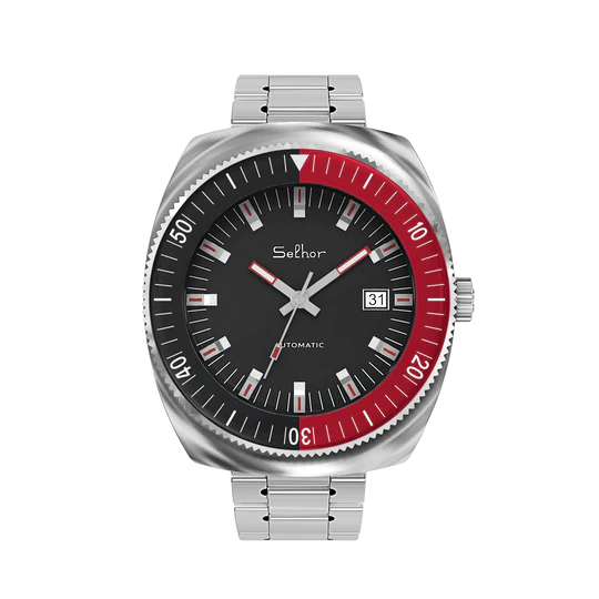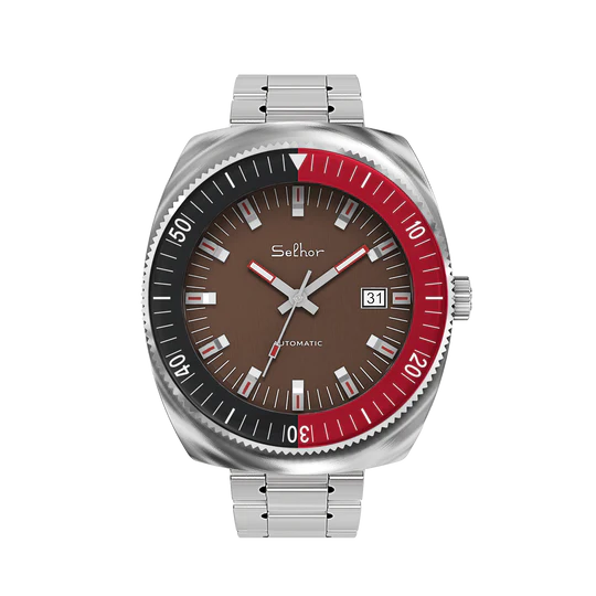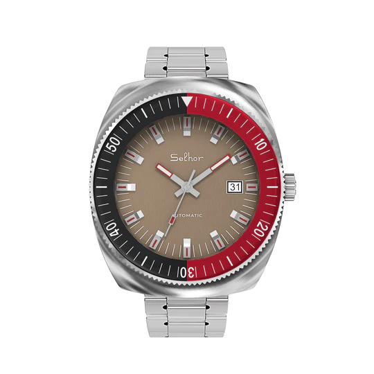 El Vintage Diver es el tercer modelo tras el relanzamiento de Selhor, además de ser la pieza más ambiciosa hasta ahora. Es la primera en equipar un calibre mecánico (el Miyota 9015) y tiene un precio atractivo, aunque evidentemente ya no es tan “accesible” como los dos primeros modelos.