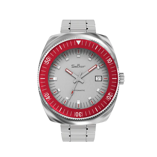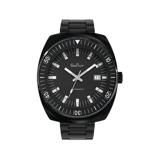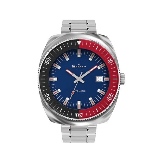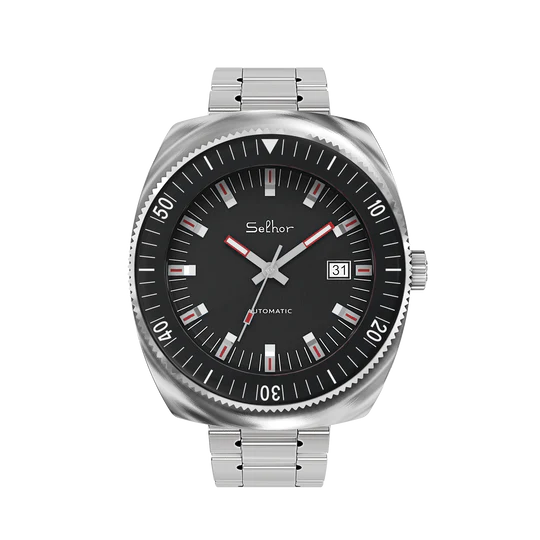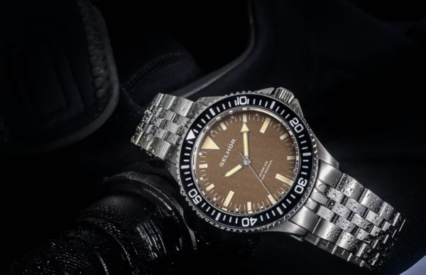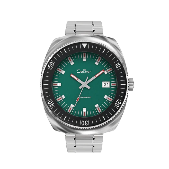 Con sólo mirarlo, es evidente lo acertado que es su nombre. El Selhor “Vintage Diver” parece sacado directamente de la década de 1970, destacando su caja en forma de cojín y su cristal de zafiro de doble cúpula biselado que recuerda los cristales acrílicos de aquel periodo.