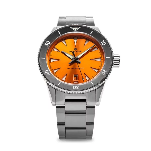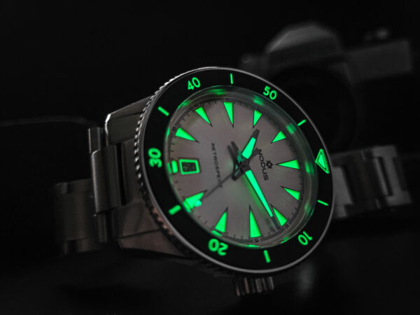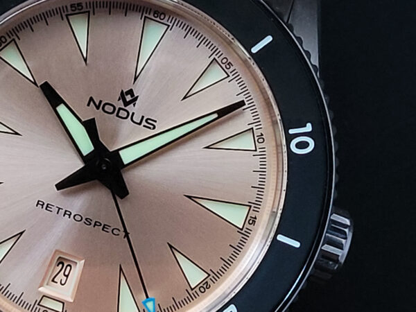 Nodus siempre se ha enorgullecido del mecanismo de funcionamiento del bisel utilizado en la serie Retrospect. A diferencia del uso más común de las placas de clic en muchos relojes de buceo, el Retrospect III utiliza un muelle de presión, no muy diferente al que se encuentra en los Rolex de las dos décadas anteriores. Esto ofrece una acción mucho más precisa y satisfactoria.