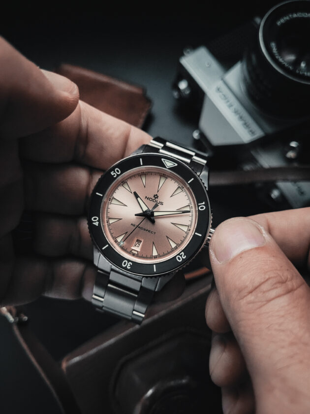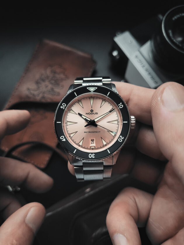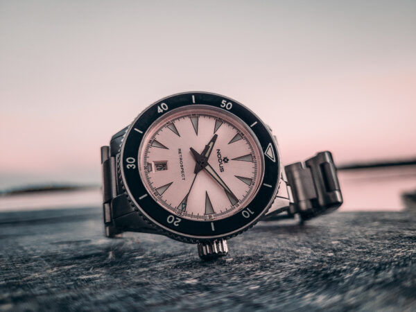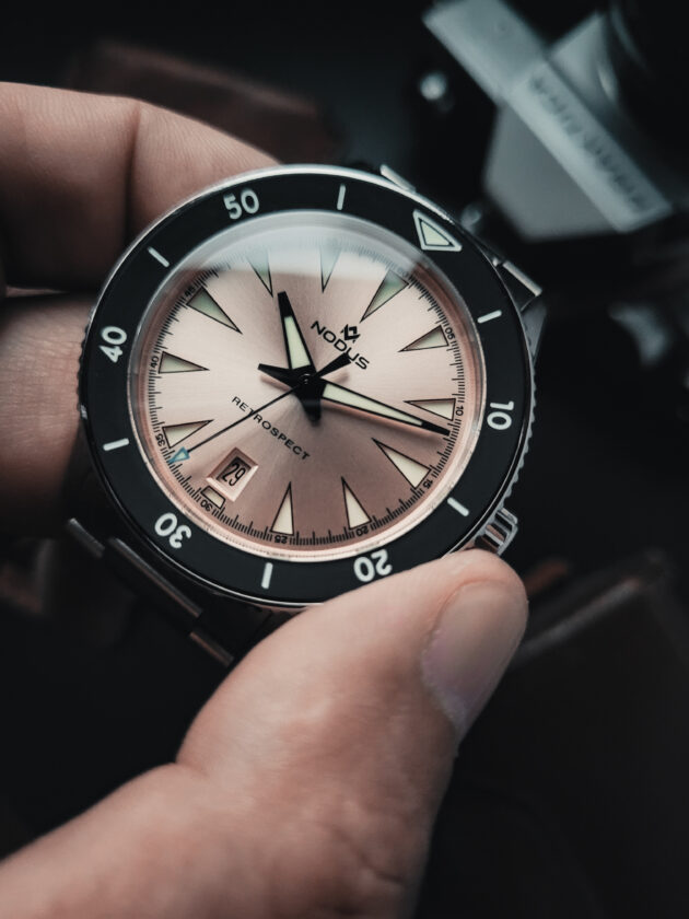 El eslogan del Nodus Retrospect III reza así: “hecho con el espíritu de los relojes de buceo vintage influyentes, pero menos conocidos”. Pensad en Gruen. Pensad en Breitling. Pero aseguraos de pensar en el Rado Captain Cook.