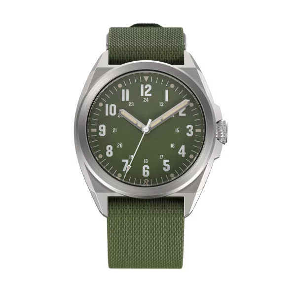 De hecho, el Valour 38 es un reloj de diseño sencillo, austero y utilitario, que juega con los puntos fuertes del fabricante. Con sólo 38 mm de diámetro (fiel a su nombre) y 45 mm de longitud (“lug-to-lug”), el reloj no se interpondrá a ninguna aventura. Su grosor es de sólo 11 mm, factor que también permitirá que desaparecerá sin problemas bajo el puño de una chaqueta cuando sea necesario.