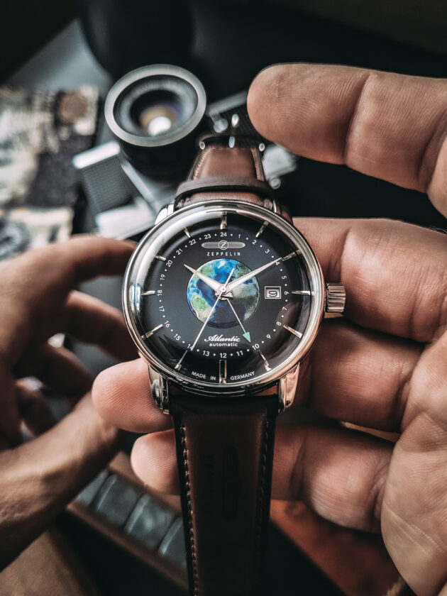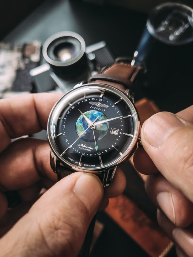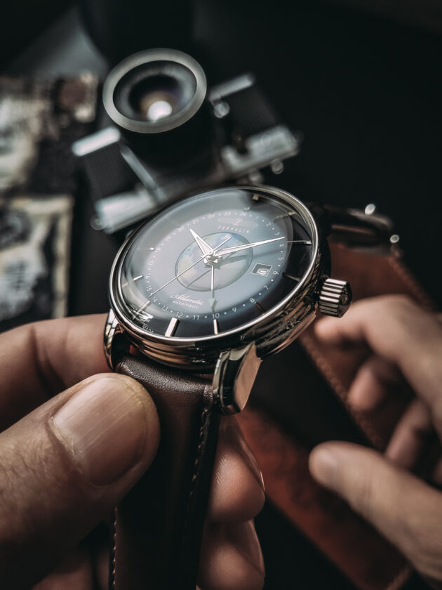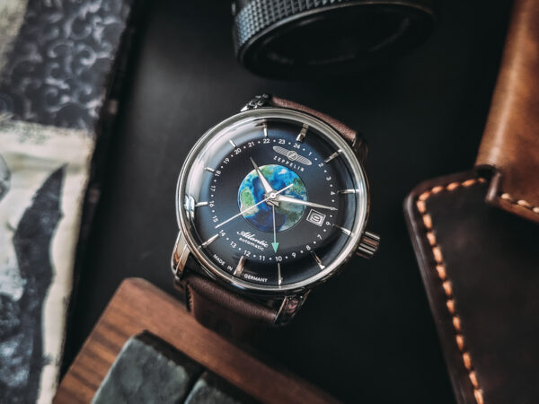 Gran parte de la colección de Zeppelin está dominada por relojes inspirados en aviones. El Atlantic GMT no es diferente. A pesar de sus inclinaciones elegantes, el reloj se asemeja al equipamiento de un tablero de instrumentos de los primeros aviones. Como tal, emana una belleza funcional. Aunque POINTtec lleva fabricando relojes desde finales de los años 80, la marca Zeppelin no se fundó hasta 2002. Su objetivo era complementar la creciente oferta de POINTtec con productos de mejor categoría que rememoraran la era clásica de la aviación. Al igual que sus marcas hermanas Bauhaus, Junkers y Iron Annie, la línea Zeppelin se fabrica en la región alemana de Ruhla.