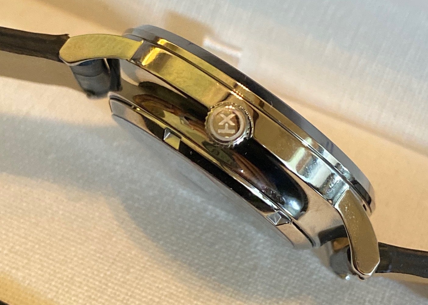 El reloj en sí llega cuidadosamente protegido por un envoltorio de plástico, además de la protección para los cristales delanteros y traseros. Después de quitar los plásticos, encuentro un guardatiempo muy bien ejecutado. Sí, guardatiempo, un término que reservo para relojes de gama moderada a alta. Considero que este Waterbury Classic es un reloj de entrada a la afición debido su precio. A primera vista, el reloj me recordó un reloj Frederique Constant, elegantemente grande.