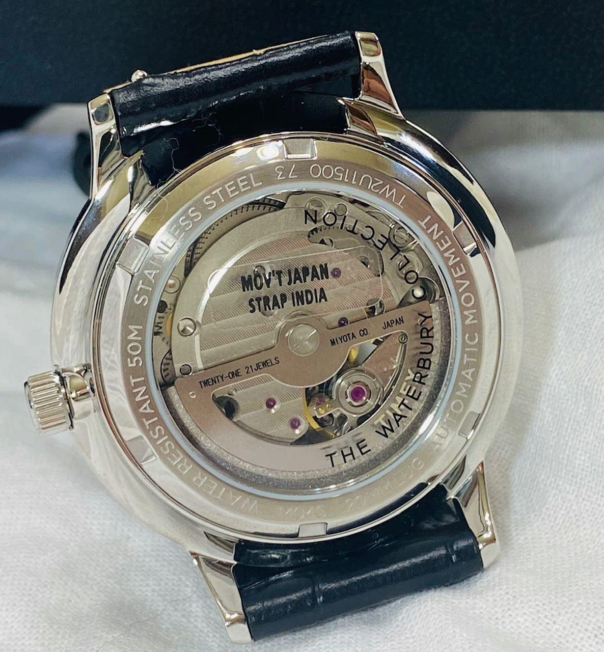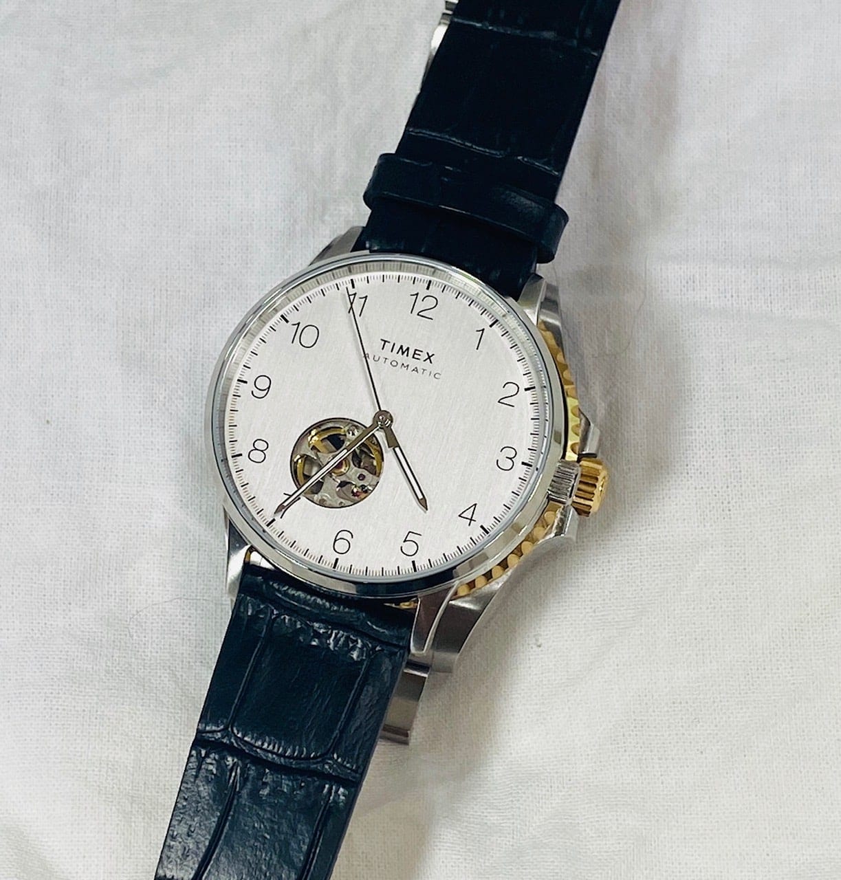 Mecánicamente, como indiqué anteriormente, Timex eligió un Miyota japonés, un movimiento mecánico/automático con 21 rubíes. Este es un Miyota probado y fiable (posiblemente el calibre básico 8215) con una reserva de marcha de 40 horas. El segundero funciona sin problemas y tiene un barrido consistente con un movimiento automático. El remonte del reloj es fácil y suave, pero transmite buena resistencia. Después del remonte completo inicial, el reloj funcionó aproximadamente 58 horas, que es mucho mejor que las 40 horas que reclama Timex. Lo cargué un viernes por la tarde y todavía estaba funcionando la mañana del lunes. Con este calibre, creo que Timex ha hecho una sabia elección.